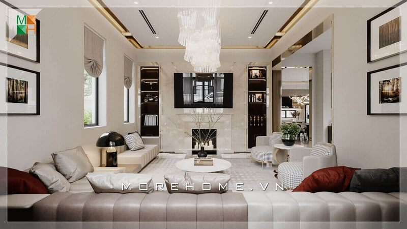 Bất ngờ với sự sang trọng và tinh tế trong không gian thiết kế phòng khách đẹp sang trọng của đội ngũ KTS tại Morehome.