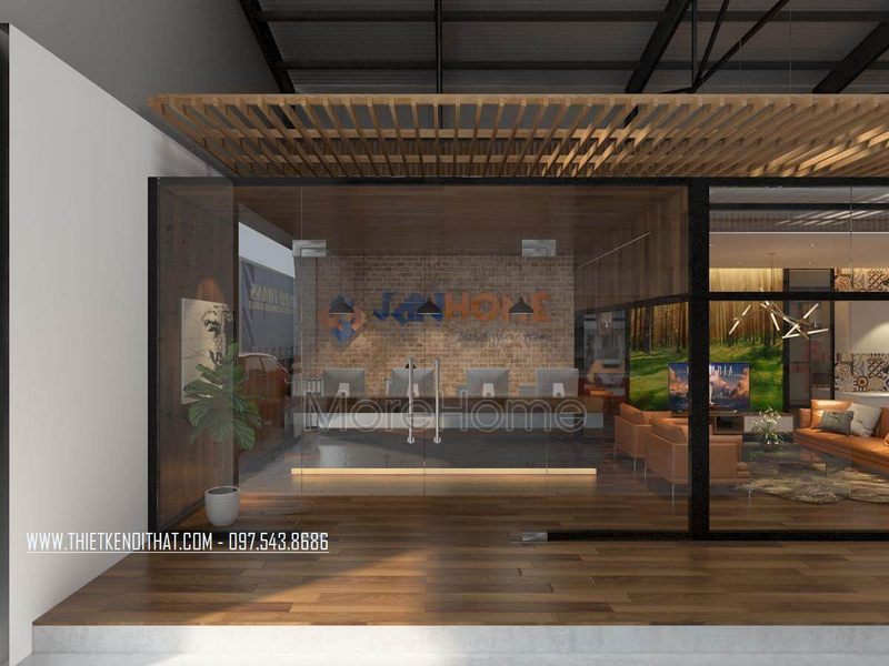 Mẫu thiết kế showroom nội thất JANHOME hiện đại được tạo bởi KTS MoreHome với cách bố trí các không gian : khu tiếp khách, khu trưng bày sản phẩm, kho bãi hợp lí, khoa học