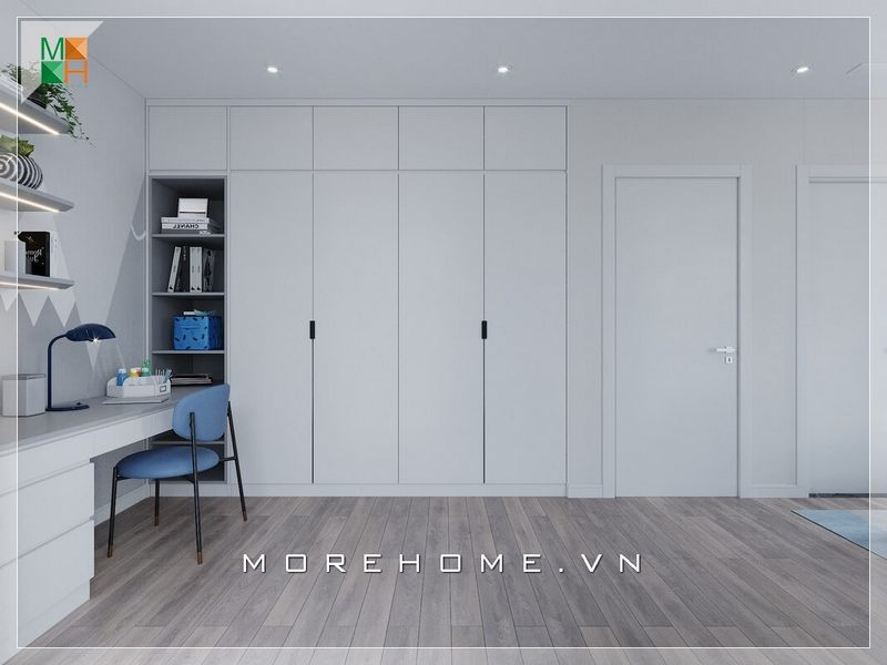Thiết kế nội thất phòng ngủ hiện đại có bàn làm việc hay góc học tập gần cửa sổ đẹp, sang trọng và tiện ghi.