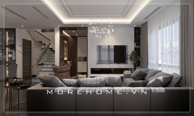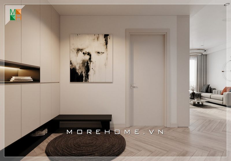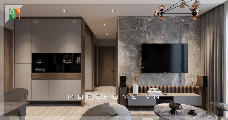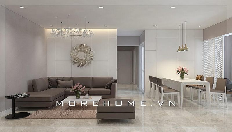 Mẫu thiết kế nội thất chung cư hiện đại với tông màu chủ đảo xám trắng mang đến sự sang trọng, tiện nghi
