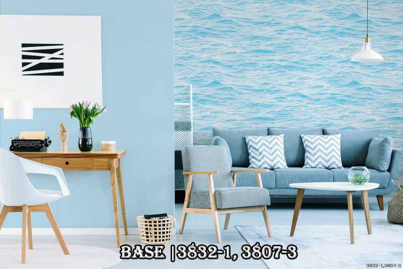 Một phong cách mới mẻ, tươi mát, hiện đại với sự kết hợp của 2 mẫu giấy dán tường 3831-1 và 3807-3.