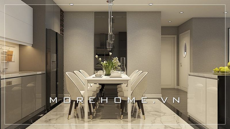 Thiết kế nội thất phòng ăn chung cư hiện đại, đơn giản nhưng không làm mất đi vẻ tinh tế và sang trọng cho không gian dùng bữa của gia chủ