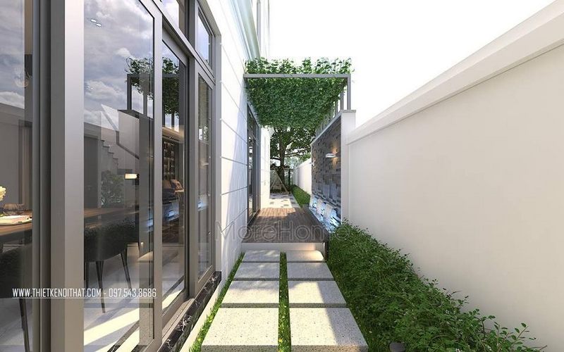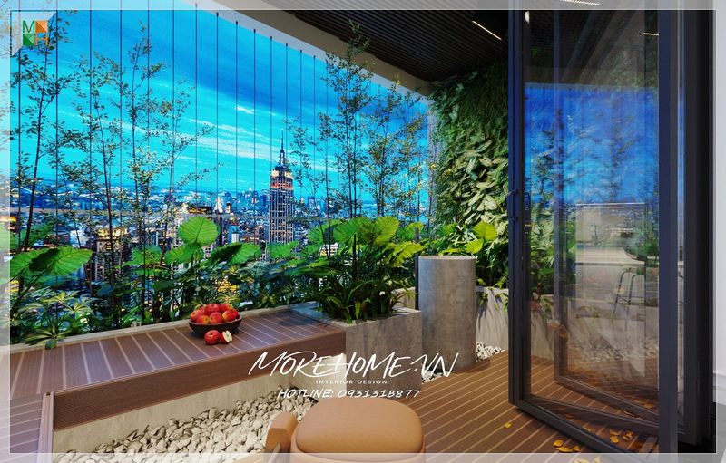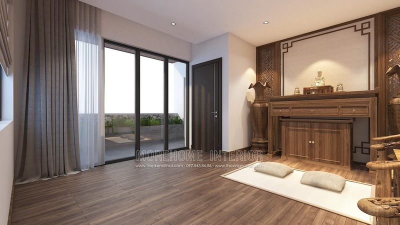 Ánh sáng tự nhiên là yêu tố rất quan trọng cho dù là bất kỳ không gian nào do vậy KTS đã lựa chọn kính cường lực để hài hòa hơn không gian trong phòng