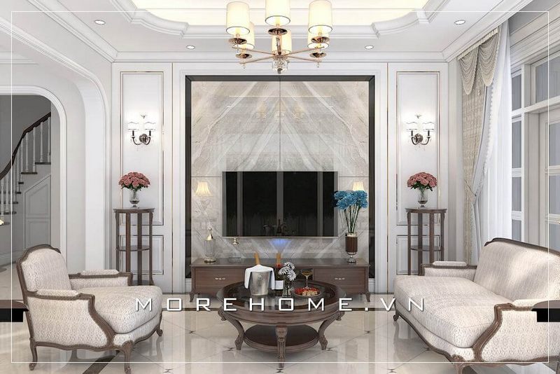 Thiết kế phòng khách phong cách tân cổ điển cao cấp, sang trọng cho chung cư, biệt thự, nhà phố
