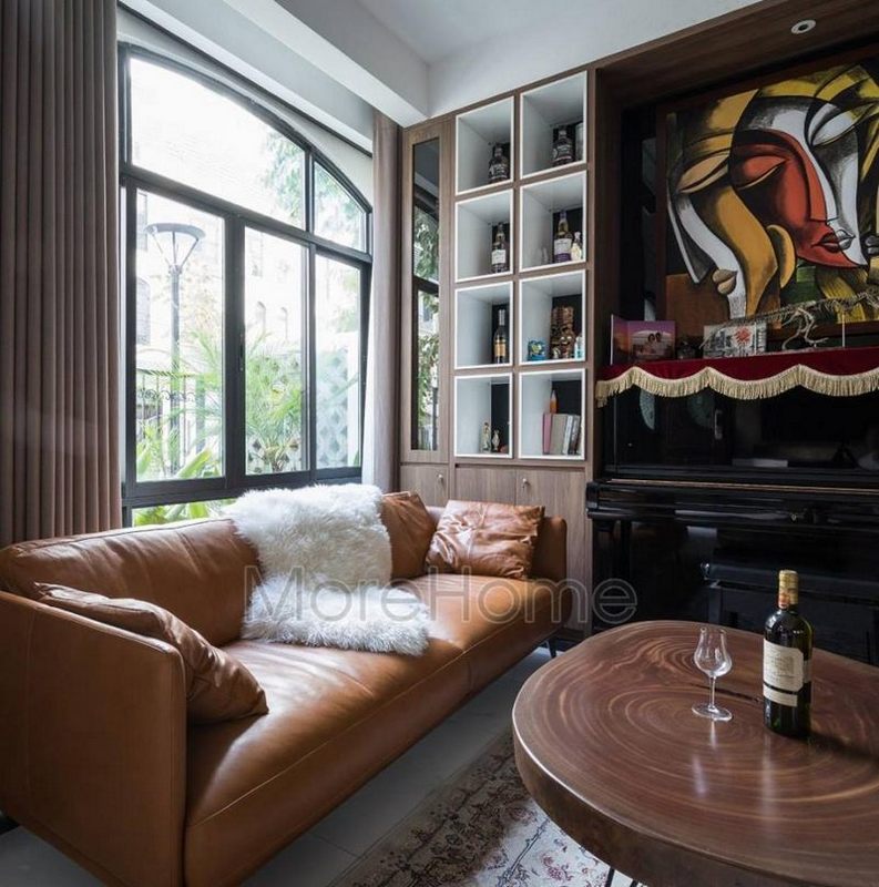 Thiết kế nội thất phòng khách chung cư nhấn mạnh đến các chi tiết nhỏ, từ đó gợi một cảm giác hoang dã, tự nhiên, mộc mạc mà vô cùng gần gũi