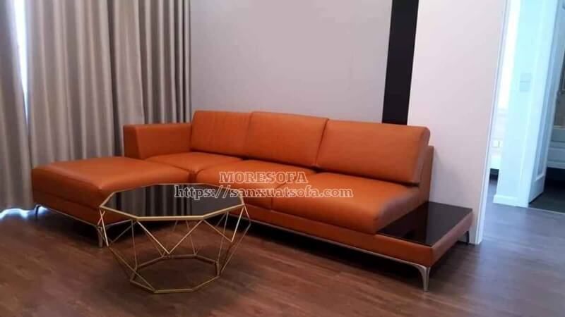Phòng khách căn hộ chung cư thêm thoáng đãng tiện nghi với thiết kế sofa hiện đại dáng góc chữ L lại sang trọng, tinh tế từ chất liệu da bọc cao cấp.