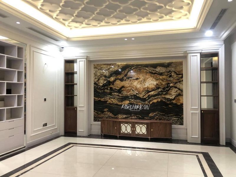 Được sử dụng đá dối vân ốp tường cho phòng khách chung cư biệt thự, nhà phố được ưa chuộng sử dụng trong trang trí và tạo điểm nhấn riêng biệt cho phòng