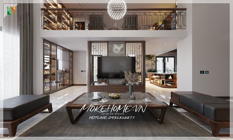 Thiết kế nội thất phòng khách biệt thự phong cách gỗ Việt sang trọng, ấm cúng thể hiện đẳng cấp của gia chủ