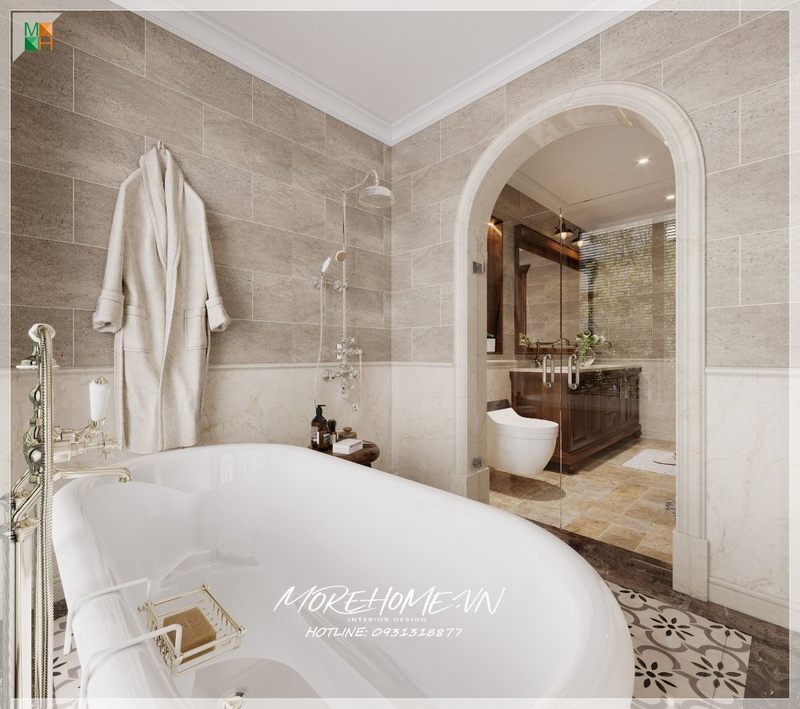 Thiết kế nhà vệ sinh kết hợp nhà tắm phù hợp với diện tích căn phòng biệt thự, nhà phố sẽ giúp người dùng tiện lợi hơn. Sử dụng gạch lát nền và gạch ốp tường đẹp cũng là một yếu tố cần chú ý.