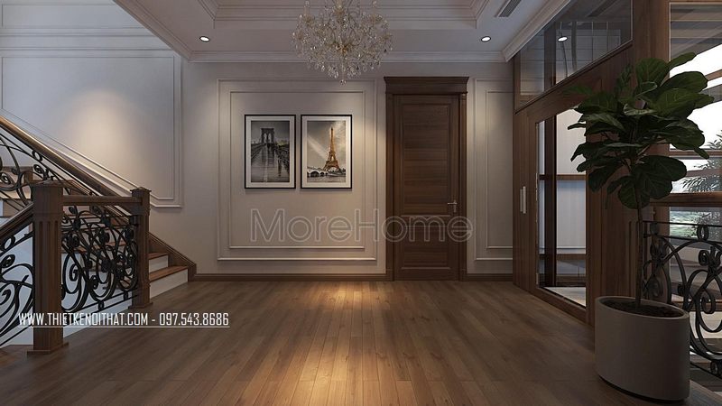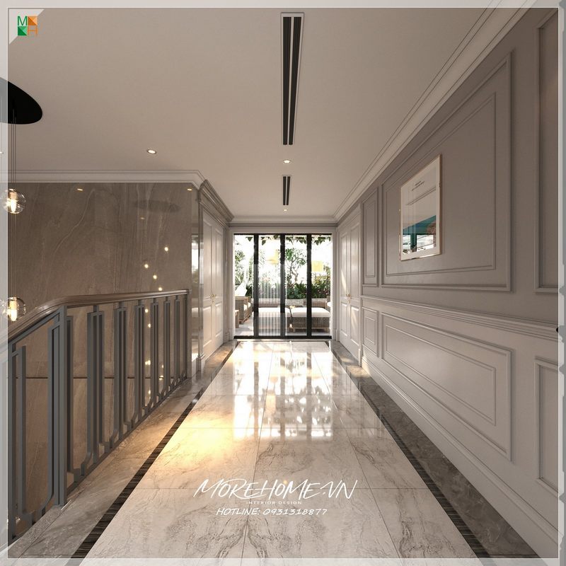 Không đơn thuần là 1 lối đi hành lang kết nối với các phòng trong biệt thự, nhà phố mà nó được được sắp xếp, bài trí theo phong thủy giúp lưu thông không khí, gia đình ấm êm.